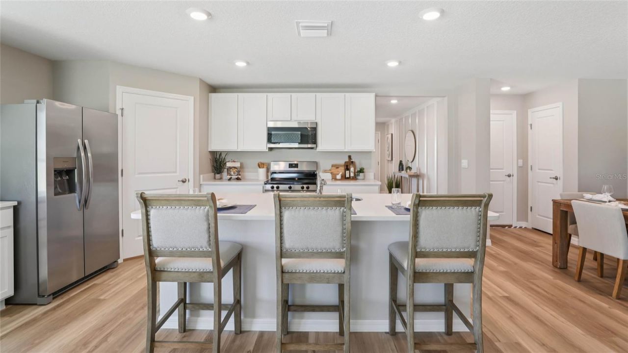 Under Construction. The Lakeside is a beautiful five bedroom, three bathroom home with an open-concept floorplan. Discover the blend of comfort and functionality as you enter the heart of this home. The kitchen overlooks the great room leading outside to the patio. Cooking in this kitchen is a breeze with a large kitchen island, quartz countertops, and stainless-steel appliances, including a range, microwave, and built-in dishwasher. Nearby the great room is the primary bedroom with a large ensuite bathroom featuring a spacious walk-in closet, linen closet and double vanity with quartz countertops. Bedrooms 2 and 3 share a full bathroom nearby the dining room, while bedrooms 4 and 5 are located near the front of the home and share the third full bathroom. The Lakeside is complete with a state-of-the-art smart home system. Pictures, photographs, colors, features, and sizes are for illustration purposes only and will vary from the homes as built. Home and community information including pricing, included features, terms, availability and amenities are subject to change and prior sale at any time without notice or obligation. CRC057592.