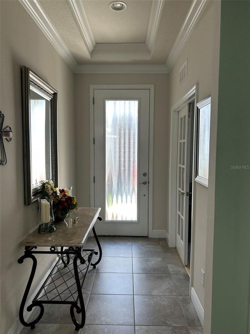 Your Private Sanctuary Awaits. This almost custom Villa harmoniously blends elegant features with a tranquil vibe. Enjoy the spacious 18x20 screen enclosed patio/lanai.YOUR HAPPY PLACE, featuring charming festival lighting, elegant brick pavers,TV hookup for ultimate sports and leisure - while gazing on to your manicured lawn, complete with custom garden edging and low voltage lighting. Elegant and warm Interior colors, Gourmet Kitchen, boasting sophisticated MAPLE-ESPRESSO CABINETs gleaming granite Bistro-Sized Breakfast Bar. stainless appliances, Stainless double sink, Timeless subway tile backsplash.satin nickel handles.CROWN MOLDING completes the touch of class along with pendant and recessed lighting. Welcome and impress your friends with a stately entrance - Glass-paneled front door.tray ceiling. Plenty of central storage with a broom closet and walk in pantry. Spacious laundry room. Neutral, LOW MAINTENANCE Ceramic Tile everywhere except bedrooms. DECORATIVE PLANTATION SHUTTERS on patio slider, Blinds on all other windows Owner's suite includes tray ceilings, walk-in closet, Double sinked vanity in bath with Quartz Countertop. Ceiling fans, Garage outfitted with overhead shelving keeping your home clutter-free. ASSOCIATION MAINTAINS, Painted exterior, Roof replaced at timed intervals, and lawn mowed, leaving you only to care for your curated plants or cool off at the community pool, venture through the nature trails, take your pooch to the dog park.shoot hoops at basketball courts. Shopping just a few minutes south, highly rated schools within reach. Conveniently located to Suncoast Parkway, 1-275, Great location.AWESOME LIFESTYLE. It's all here for you at this hideaway. Schedule your showing today. Buyer/Buyer's agent to verify room measurements, HOA regulations, and any other pertinent information regarding this transaction.
