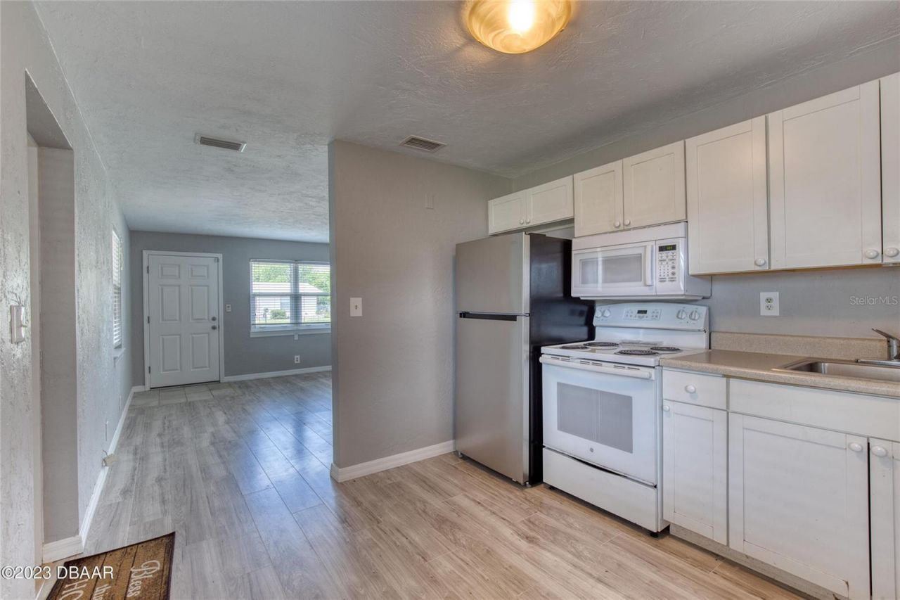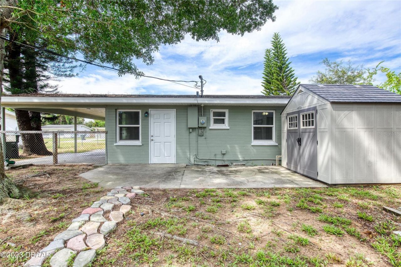 WOW! NEW PRICE & MOVE IN READY!! Perfect, Solid Concrete Block 2-bdrm 1-bath home waiting for you!! Recently renovated and updated with New Washer, Dryer, Water Heater and Dishwasher. Luxury wood plank flooring throughout home. Roof new in 2022, Updated windows, AC new in 2015, recent new interior and exterior paint. Attached Carport for your convenience. Shed on concrete pad behind house for laundry and storage. Home partially furnished and partial fence in back yard. This home is centrally located near Shopping, Restaurants, Universities, AND is Only a SHORT Drive or Bike ride to Daytona Beach amazing beach! Available immediately! Also, this is a Great investment property.. Don't miss this one! Schedule showing today!