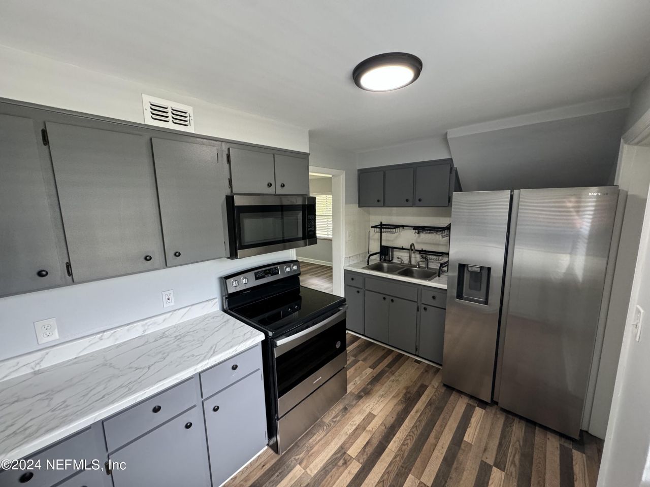 Move in Ready! This recently renovated two-bedroom, one bathroom unit is located on the first floor. The property has new floors, an updated kitchen, and updated bath. There is a shared garage space which provides for additional storage. Washer and dryer included. You will enjoy being close to parks, great restaurants, and shopping. Application is $75 per person 18 and over. Processing fee of $125 due at lease signing.