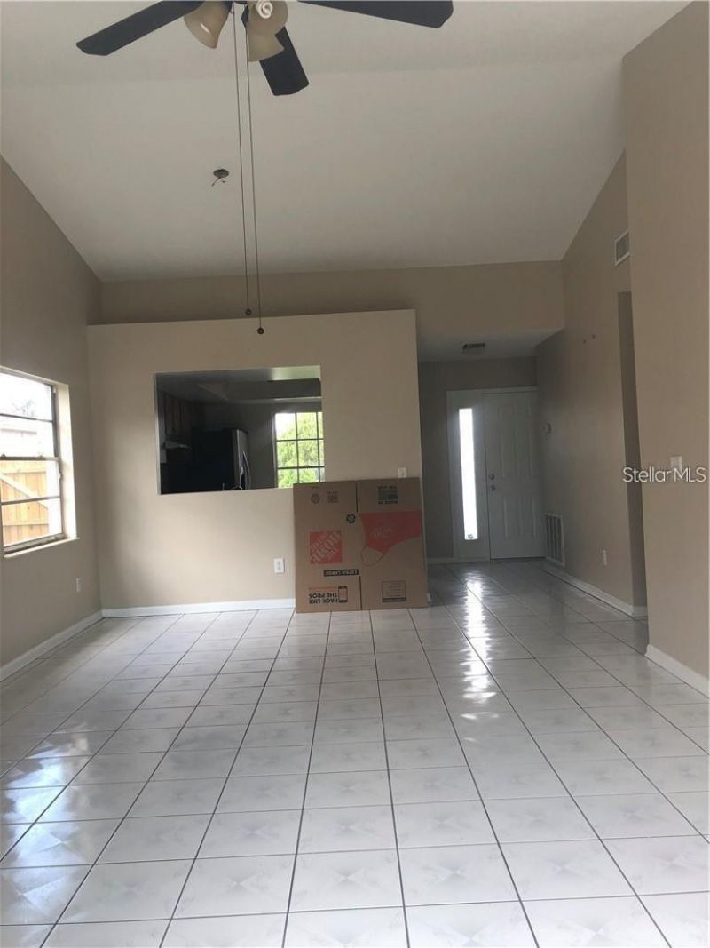 READY FOR MOVE IN ON APRIL 1ST! The property has been refurbished with paint touch-ups and new vinyl flooring in all 3 bedrooms. Quaint single-family home FOR RENT in MEADOW WOODS VILLAGE features: 3 bedrooms, 2 bathrooms, 2-car garage, NO CARPETS, fenced-in backyard, sitting on a cul-de-Sac. Open-floor plan, with tall vaulted ceilings, fans, and an indoor utility room. The home's fenced-in backyard and rear patio provide extra space for cool evenings out in the fresh air. The home is centrally located, close to SR 417, Osceola Parkway, the FL Turnpike, major shopping centers, and popular restaurants.