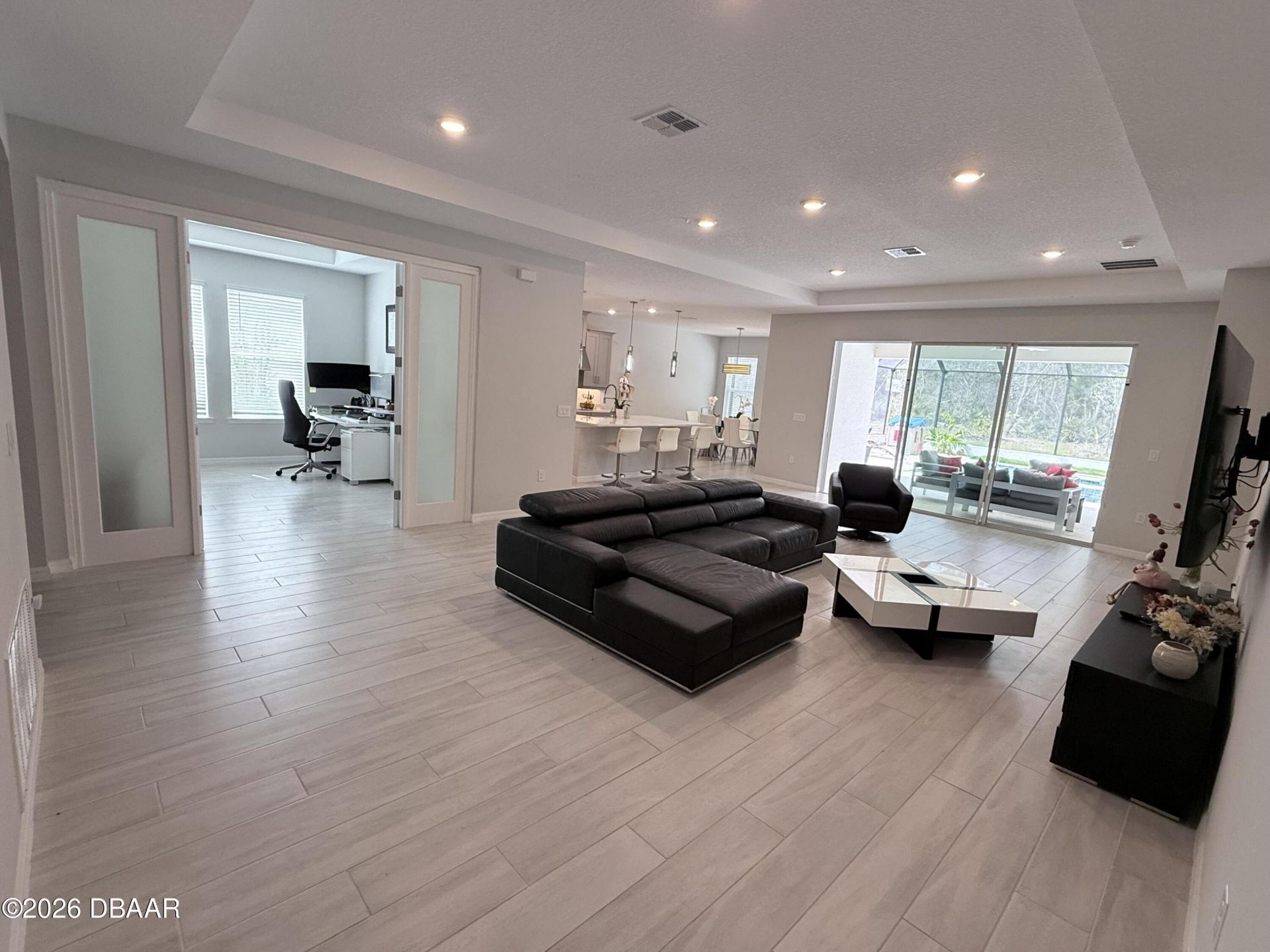 Beautiful, upgraded home. Features a 3-way split plan centered around an open-concept kitchen and gathering room. There are 3 full bathrooms and an elegant powder room. The gourmet kitchen features stainless steel appliances and a pot filler over the glass hot plates. The primary suite is situated privately in the back corner of the home and overlooks the pool. The master includes a spa-like bathroom with separate soaking tub and the shower features a rainfall shower head. The huge gathering room comfortably host a large party. Wall to wall glass doors lead out to a huge pool and deep spa surrounded by travertine. This is Florida living at its best. Tray ceilings are featured throughout the home.