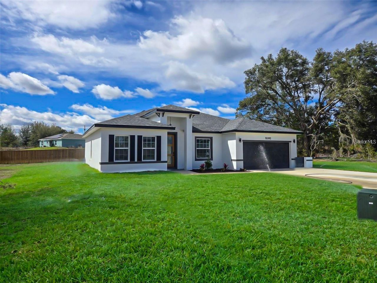 Beautifully designed new home in the desirable community of Marion Oaks! This residence features 4 spacious bedrooms, 2 bathrooms, and 1,774 sqft of open-concept living with soaring ceilings, abundant natural light, and elegant finishes throughout. The gourmet kitchen offers quartz countertops, custom cabinetry, stainless steel appliances, and a large island perfect for entertaining. The primary suite includes a walk-in closet and a nice bathroom with dual vanities and shower. Enjoy the patio and beautifully landscaped yard. Conveniently located near shopping, dining, parks, and major roadways.