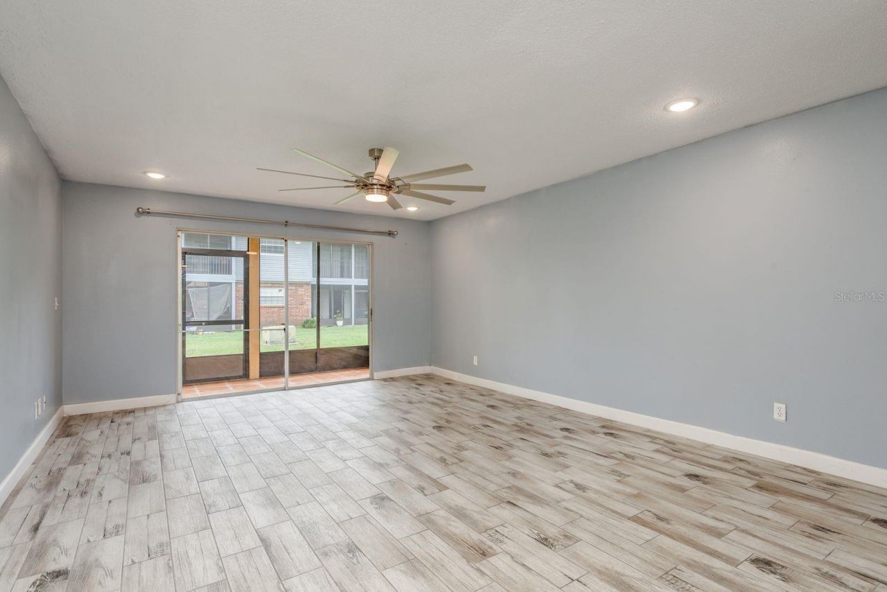 Welcome to this charming first-floor end-unit condo located in the Venetia Country Club community. Offering over 800 square feet of comfortable living space, this 1-bedroom, 1-bathroom home features newer tile flooring throughout, creating a clean and low-maintenance interior. The open living room and dining room combination provides a functional layout ideal for everyday living and entertaining. The kitchen includes dual sinks and newer appliances, offering convenience for cooking and meal prep. The primary bedroom features a spacious walk-in closet, providing excellent storage and functionality. Just off the main living area, you'll find a covered and screened-in back porch, a perfect spot to relax and enjoy Florida's outdoor lifestyle. Additional highlights include in-unit laundry, a newer air handler, and a reserved parking space for added convenience. Residents of Venetia Country Club enjoy access to community amenities including a clubhouse, pool, and fitness center all while being just minutes from East Bay Golf Club, shopping, dining, and everyday conveniences. Whether you're looking for a primary residence, seasonal getaway, or investment opportunity, this well-maintained condo offers comfort, location, and value.