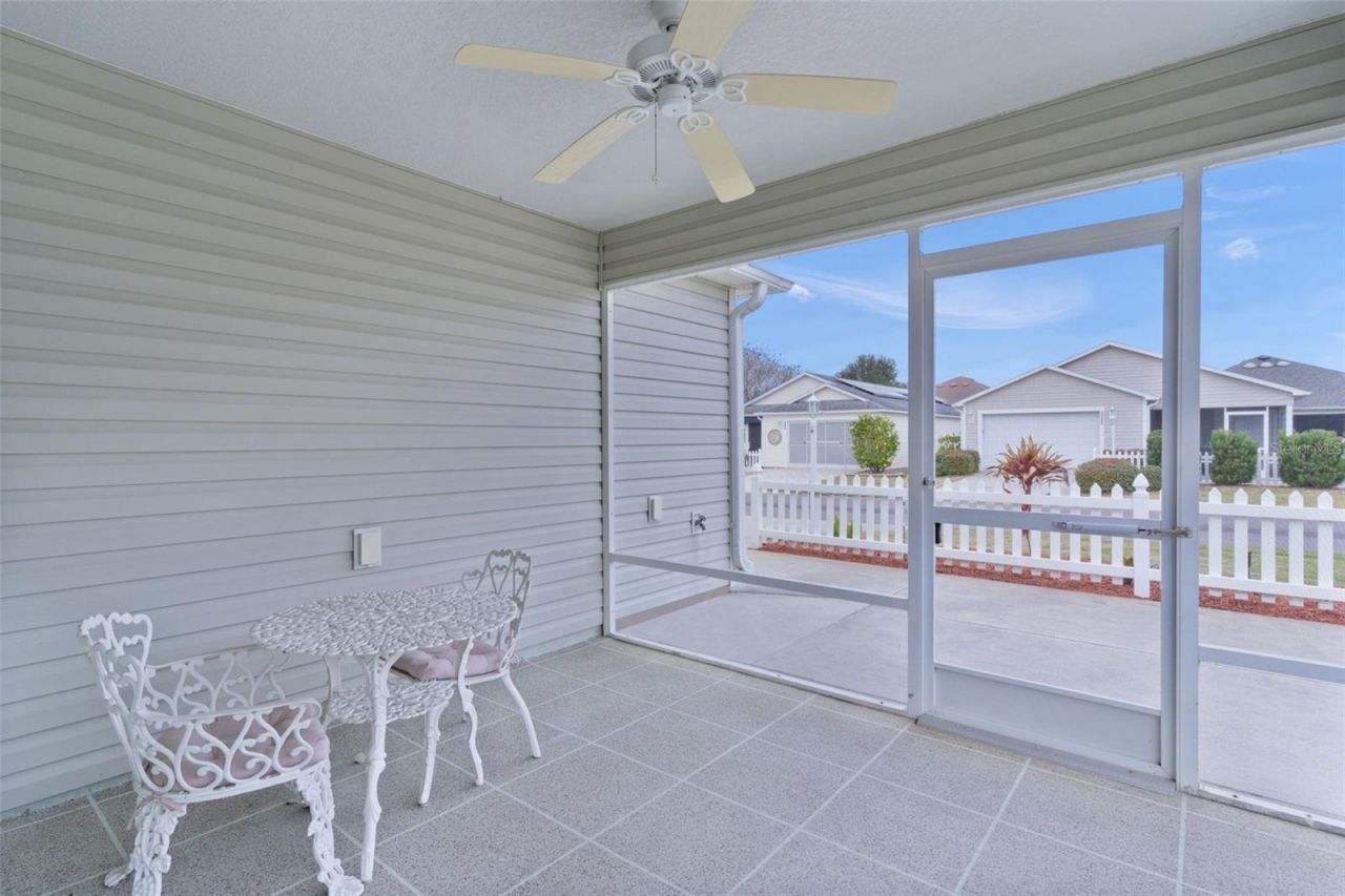 ~TURNKEY~ ~1 YEAR HOME WARRANTY TO BUYER~ ~LUXURY VINYL PLANK FLOORING THROUGHOUT~ ~INDOOR LAUNDRY~ ~CONVENIENTLY LOCATED BETWEEN THE 6'S~ Welcome home to this COLONY Patio Villa in the sought-after Village of ST JAMES-a charming, low-maintenance retreat offered TURNKEY and perfectly positioned on an offset lot for added privacy. Step inside to discover LUXURY VINYL flooring throughout, creating a cohesive and stylish feel. The inviting living room features a ceiling fan and flows seamlessly into the well-designed kitchen, complete with laminate countertops, matching appliances, recessed lighting, bottom cabinet rollouts, a CLOSET PANTRY, and a cozy eat-in area-ideal for casual meals or morning coffee. The primary bedroom offers a peaceful escape with a ceiling fan and WALK-IN CLOSET, while the primary bath includes a walk-in shower and laminate countertops. A comfortable guest bedroom with a built-in closet and a guest bath featuring a tub/shower combo, linen closet, and laminate countertops provide welcoming accommodations for visitors. Convenience continues with an INDOOR LAUNDRY CLOSET equipped with shelving and WHIRLPOOL appliances. The 1.5 car garage features a laundry tub for additional added convenience as well as a WATER PURIFIER system. Relax and unwind in the screened-in lanai with painted flooring and a ceiling fan, perfect for enjoying Florida's beautiful weather year-round. The Roof, HVAC, and Hot Water Heater are all 2012. This delightful patio villa offers comfort, style, and the unbeatable lifestyle The Villages is known for! Location, Location, Location...this Villa is situated minutes from CR 466A with all its shopping, dining and medical. You are a short golf cart ride to Evans Prairie Country Club, the St James Rec Center and several Executive Golf Courses. In addition, you are uniquely situated between Brownwood Paddock Square and Lake Sumter Landing! Everything at your fingertips!