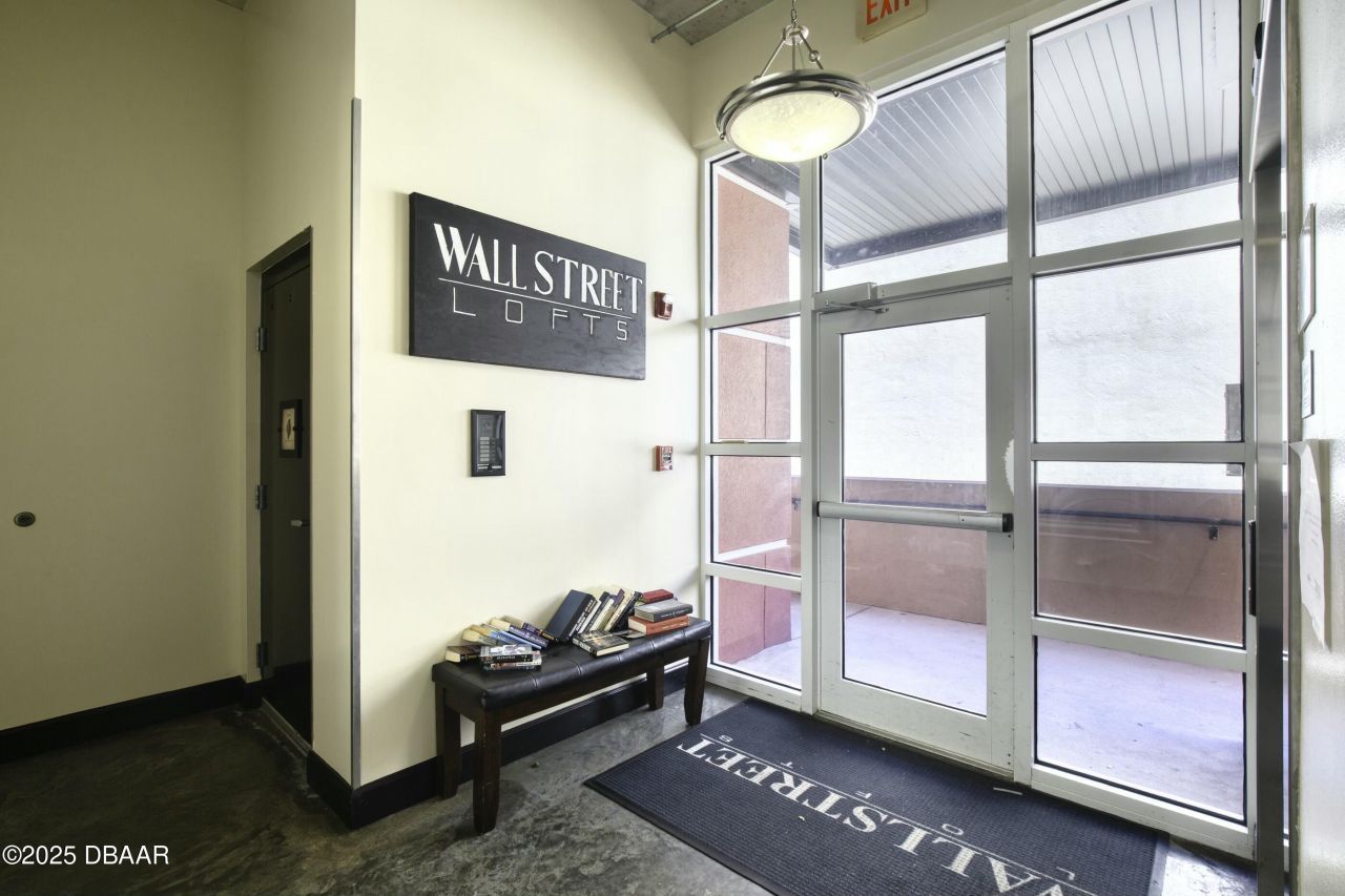 Welcome to the Wall Street Condos!Experience luxury loft living in the heart of Daytona Beach! This one-of-a-kind loft features soaring 10' ceilings, exposed ductwork and brick, and elegant plantation shutters that bring character and warmth to the space. The modern kitchen is equipped with sleek stainless steel appliances, perfect for cooking and entertaining.The open floor plan makes hosting guests a breeze, with plenty of room to relax and unwind. Located in a secure, centrally-located building, residents enjoy gated parking, coded entry, and elevator access.Take in the breathtaking 360° panoramic views from the rooftop courtyard, complete with a covered lounge, grill, and bar"ideal for entertaining or relaxing under the stars. You're just steps away from local restaurants, shopping, the farmers market, Jackie Robinson Ballpark and the Riverfront Esplanade.Don't miss your chance to own this truly unique urban retreat! Square footage received from tax rolls. All information recorded in the MLS intended to be accurate but cannot be guaranteed.