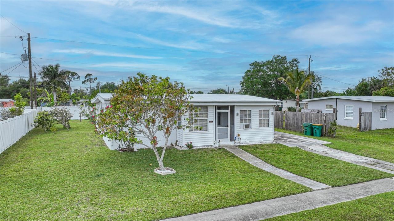 Calling all Investors, snow-birds, and First-time home Buyers. This affordable home features three Bedrooms, two baths, with a bonus room. The yard is fenced and has an above-ground pool with deck, a shed for storage, and a variety of tropical Florida fruit trees. Located close to everything Port Charlotte has to offer, including Gulf Beaches, shopping, entertainment, and health care. This home is steps away from the renovated McGuire Park that offers Pickle Ball, Fishing, walking trails, Grills, and a super fun SPLASH PAD for year round play. This comfortable home had an tasteful Kitchen make over with granite counters and Stainless appliances. Bedrooms are split with beds 2&3 sharing a Jack and Jill style Bathroom with shower/tub combo. The stacking washer and dryer and Laundry sink are located inside the residence conveniently in Bath #2. Metal roof was recently recoated/sealed, Plumbing and Electrical upgrades have recently been completed as well, per Seller.