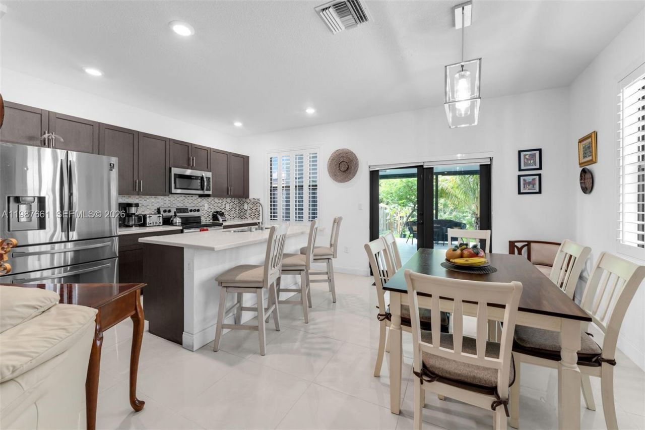 This meticulously upgraded home in one of Homesteads sought-after communities, where modern design, outdoor living, and location come together in one extraordinary package. Step through the foyer into a sunlit open floor plan where oversized ceramic tile flows beneath designer lighting, and a stunning kitchen commands attention. Granite countertops, a hand-laid chenille stone backsplash, and refrigerators with water filtration systems and stainless steel appliances complete the look. A half-bath completes the main floor perfectly. Upstairs, the master retreat delivers everything you need: a walk-in closet, a ceiling fan, and a spa-inspired ensuite with dual sinks and a glass door shower. A hallway bathroom serves the additional two bedrooms. A dedicated laundry room upstairs. The backyard opens up ? and nothing compares. Fully fenced and sprawling across a 3,550 sq ft lot, this is the outdoor space buyers search for and rarely find. A 25x25 ft pergola with ceiling fans and roll-down shades, a full quartzite outdoor kitchen, refrigerator, and a lush private yard flourishing with Mango, Avocado, Mamey, Lemon, Coconut, and Plantain trees. This is not just a backyard; this is your own private resort. Extras. new vanity. Plantation shutters. Resort-style community amenities include a clubhouse, security patrol, Olympic pool, gym, playground, and walking trail ? all with low HOA fees. Minutes from the Turnpike, US-1, Publix, Black Point Marina, WAWA, Chick-fil-A, and ALDIs.