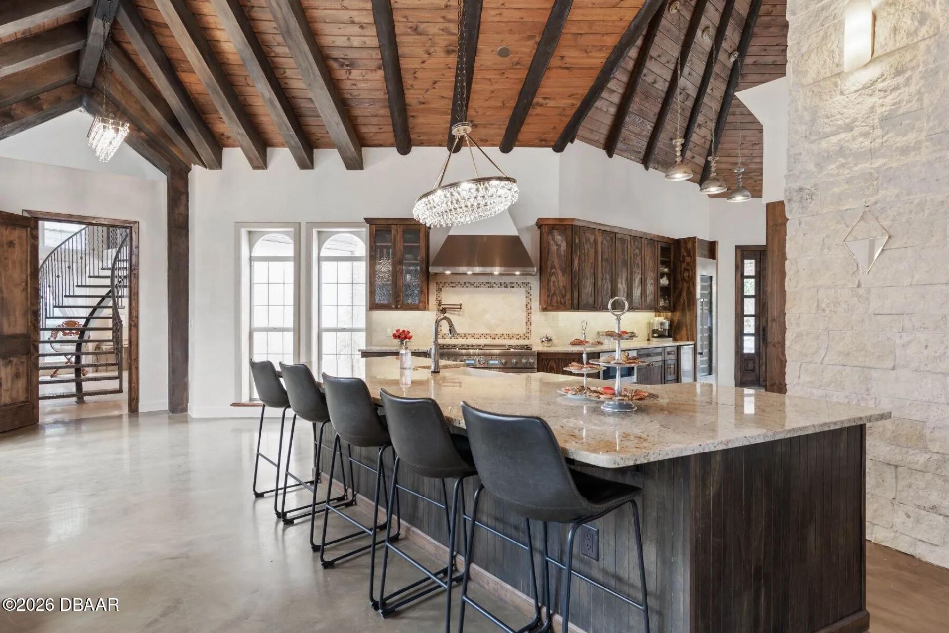 SPECTACULAR RIVERFRONT PRIVATE RESORT LIVING Welcome to an extraordinary estate where history, architectural artistry, and breathtaking natural beauty converge. Perched atop a rare natural dune with sweeping, pristine views of the Tomoka Basin, the Intracoastal Waterway, and the river beyond, this one-of-a-kind residence offers an unrivaled blend of privacy, prestige, and Old Florida charm. This remarkable property traces its roots to the historic Santa Lucia Plantation and was originally selected for its idyllic setting by John Anderson himself. The estate's architect fittingly christened the residence ''The Mona Lisa,'' recognizing it as a true masterpiece of design and craftsmanship. The vision was brought to life by a world-renowned sea captain whose passion for durability and beauty inspired a fortress-like construction rarely seen in residential architecture. Built with millions of dollars' worth of reinforced concrete construction creating a GRAND Estate!!! Spanning multiple parcels, the property offers extraordinary space and flexibility, including a buildable 200' x 60' Intracoastal waterfront lot and the primary homesite measuring 340' x 199', all positioned to capture breathtaking water views and spectacular sunsets. Whether enjoying peaceful mornings overlooking the Tomoka Basin or embarking on boating adventures from your private dock, life here feels like a permanent vacation.The Main ResidenceThe impressive three-story main home features expansive living spaces designed for both grand entertaining and comfortable everyday living.Highlights include: A dramatic two-story primary suite with dual spa-inspired bathrooms Three additional bedrooms with en-suite baths Five additional flexible spaces ideal for offices, lounges, guest quarters, or creative studios An attached four-car garageGuest House & Additional StructuresThe charming two-story cottage offers exceptional versatility and privacy. It features a bedroom or living area downstairs, two bathrooms, a kitchenette, and a spacious bonus room with remarkable acoustics--perfect for a music studio, art space, or additional apartment.The property also includes a 50' x 20' RV garage that could easily be converted into additional living quarters or a luxury hobby space. With its own private patio and generous grounds, the guest house is ideal for extended family, in-laws, or vacation rental potential. There is even ample room to add a pickleball or tennis court.A third structure provides another oversized garage with 12-foot ceilings, workshop space, and room for two vehicles--or the opportunity to install auto lifts for a collector's dream garage.Outdoor Resort-Style LivingThe grounds are nothing short of spectacular. Step outside to your private outdoor oasis featuring: A resort-style heated saltwater pool Expansive travertine patio and pool deck ideal for entertaining A striking gas fire wall feature creating the perfect setting for sunset gatherings A fully equipped summer kitchen with a brand-new gas grillImagine returning from a day on the water, docking your boat at your private dock, grilling the day's catch, and relaxing poolside as the sun sets over the river.The meticulously landscaped grounds offer mature trees, shaded hammocks, and winding paths that create the feeling of having your own private waterfront park. A circular drive welcomes guests in grand style, while expansive rear parking easily accommodates dozens of vehicles.A separate entrance office adjacent to the garage provides an ideal professional space