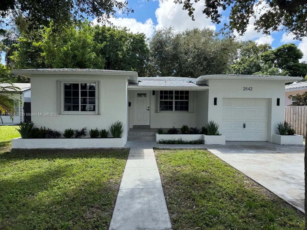 This charming 2-bedroom, 1-bathroom single-family home is nestled on a beautiful, peaceful street just moments from Hollywood Beach. The property boasts a newly renovated kitchen & bathroom, featuring complete wall skim coat, modern finishes, stylish design, brand new appliances & flooring throughout adding a fresh, contemporary feel. Newer roof per seller (2022). With an oversized lot, this home offers plenty of outdoor space for relaxation & entertaining. Spacious yard W/Fruit trees, provides endless possibilities for creating your dream outdoor retreat. The 1-car garage adds convenience & additional storage space. Perfectly located close to vibrant downtown, this home offers the best of both tranquility & accessibility. Dont miss out on the opportunity - make this beauty your own!