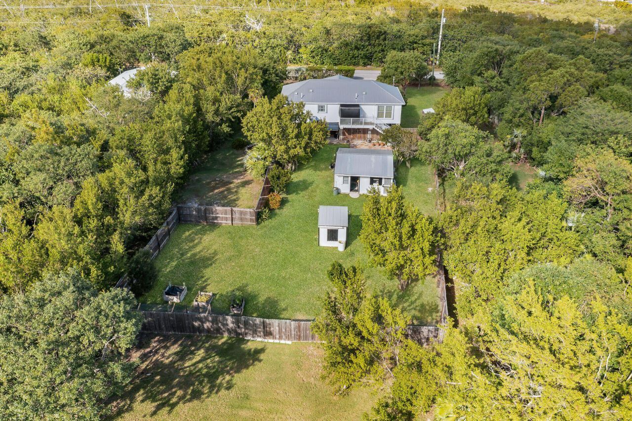Discover your dream home on Big Pine Key at this expansive 37,500 sq. ft., property totaling 6 lots that combines privacy, nature and convenience. Nestled in a serene setting with tropical landscaping and thoughtful features, this home offers a massive yard that goes from street to street and is surrounded by a 6' stockade fence allowing lots of safety and room for kids and pets to play and roam. The 3 Bedroom 2 Bath home offers an open floor plan highlighted with soaring ceilings and garden views from all rooms with no neighbors in sight. The kitchen is a culinary delight with a central island with peninsula seating, wood cabinetry and abundant counter space. Whether you're preparing a gourmet meal or a quick snack this kitchen is equipped for it all. A convenient pantry and a laundry closet add to the functionality, ensuring everything has its place. Enjoy morning coffee or evening cocktails on either the front or back porch while watching key deer roam. The home's split floor plan provides privacy and comfort. The primary suite is a private retreat with a walk-in closet and a en suite bathroom. Additional bedrooms feature engineered hardwood floors and offer plenty of space for family or guests. The property's outdoor spaces are nothing short of extraordinary. Two tranquil ponds on either side of the lot enhance the peaceful ambiance and can be filled using the private well. A large cistern is used for watering the grounds, abundant in native and lush landscaping creating a serene environment. A stone walkway leads to a spacious 20x20 shed allowing for plenty of room for all of your toys. A garden shed tucked at the back of the lot provides additional storage, while a downstairs covered lanai offers an ideal spot for entertaining, barbecuing, or unwinding in the shade. This property is as practical as it is beautiful, with a covered carport, trailer storage, room for pool and RV and plenty of parking for guests.
