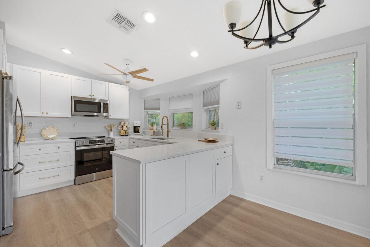 This beautifully updated 3-bedroom, 2-bath home is truly move-in ready, featuring thoughtful upgrades throughout. The renovated kitchen offers quartz countertops, soft-close cabinetry, and premium finishes, while new luxury vinyl plank flooring runs throughout the home for durability and coastal style.The open-concept layout flows seamlessly into the living and dining areas, with sliding glass doors leading to a spacious screened-in upstairs porch--ideal for morning coffee, evening cocktails, or enjoying the tropical breeze. From the front porch, enjoy stunning views of the 4th of July fireworks over the natural estuary across the street.Recent improvements include a new exterior electric panel (2023), full termite tenting (2024), and a metal roof (2017). Hurricane shutters are included for all windows and doors, providing storm protection and potential insurance savings.The oversized, fully fenced yard offers plenty of space for pets, outdoor activities, and room to add a pool. Ample parking accommodates multiple vehicles, a boat, or an RV. The screened-in ground-level enclosure features a heavy-duty bar, perfect for entertaining or unwinding after a day on the water.With low insurance premiums and a transferable flood policy, this home is both beautiful and a smart investment. Conveniently located near local shops, boat ramps, and the community park, it's well suited as a primary residence, vacation home, or income-producing property.