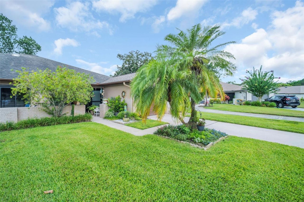 Updates Galore in this gorgeous two bedroom two full bath Villa! NO expense was spared in renovations! ENPHASE SOLAR PANELS with Batteries installed (cost $46,000.). Solar Panels significantly lower monthly electric bill ($30. average monthly bill). The recent kitchen renovation created a large open dining space complete with stunning cabinetry, high-end stainless appliances, granite countertops, beautiful mosaic tile backsplash and TONS of storage. Quality materials and workmanship can be found throughout this welcoming Villa. New hurricane impact windows. Continuous waterproof luxury vinyl plank flooring, tile in kitchen and primary bath, popcorn ceilings removed and all ceilings have been re-textured. Both bathrooms have been elegantly updated. Electric fireplace. Ceiling fans. Attached one car garage with washer, dryer and loads of storage! New hot water tank. Newer roof, A/C (maintained every six months) and newer electric panel. Whole house water filtration system. Villa is located above the flood plain in a NO FLOOD ZONE on a quiet cul-de-sac. The low HOA fee of just $336/month includes lawn service, irrigation water and sprinkler maintenance, high speed internet and cable TV and trash removal. This is a Planned Unit Development community, so you own your own lot instead of just a unit. Concrete block construction provides a secure and quiet home. Highland Lakes is Palm Harbor's PREMIER 55+ golf and lakefront community offering OUTSTANDING amenities including FREE UNLIMITED GREEN FEES on three private nine-hole executive courses, putting green and driving cages. FREE RV and BOAT storage. The main clubhouse is the hub for entertainment and social events including every club imaginable! Clubhouse offers a heated and cooled 0lympic-size pool with heated whirlpool spa, fitness, pickleball, four tennis courts with night lighting, eight shuffleboard courts, bocce ball court, arts, interest and hobby programs. The Lake Tarpon Lodge offers a second heated pool, picnic and party facilities, fishing pier, two community pontoon touring boats and a boat dock. Pontoon boats ferry residents to a local waterfront restaurant. Highland Lakes homes are HIGH and DRY and are located in the most convenient location in Tampa Bay...within minutes of the best Gulf beaches, two international airports, extensive retail options and wonderful restaurants, professional sporting events, rich cultural resources and excellent medical services are all nearby. Nothing to do except move in and enjoy this lovely completely updated Villa! Highland Lakes is CAREFREE Florida living at its FINEST!