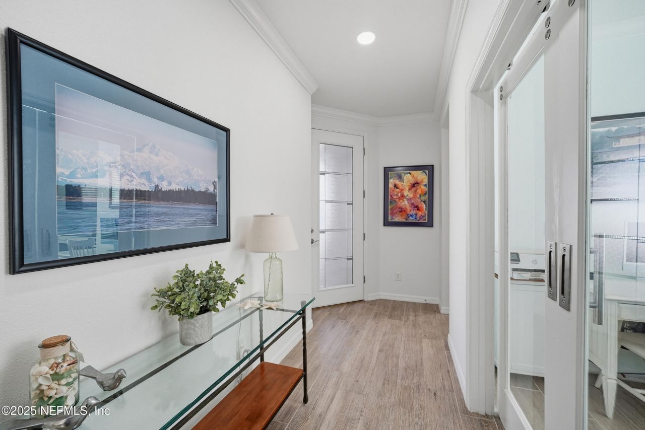 Luxury villa in Del Webb Nocatee (55+) on a premium preserve lot, steps from the Canopy Club and Cypress Caf?. This beautifully maintained Ellenwood floorplan offers 2 bedrooms, 2 baths, an office/flex room, and a kitchen with quartz counters, white cabinetry, under cabinet lighting, upgraded appliances, a new induction range, and custom pantry storage. The owner's suite includes builtin armoires, a curbless walk in shower, and a custom closet. The office features glass doors, builtins, and a wine cooler. Crown molding and custom valances throughout. The gathering room with 5.1 surround opens to an extended lanai overlooking the preserve. Additional upgrades include custom laundry and entry cabinetry, plus an extended garage with epoxy flooring, insulated door, storage cabinets, Level 2 EV charger, split HVAC, and motorized screen. Dining room chandelier not included; owner will cap fixture box.