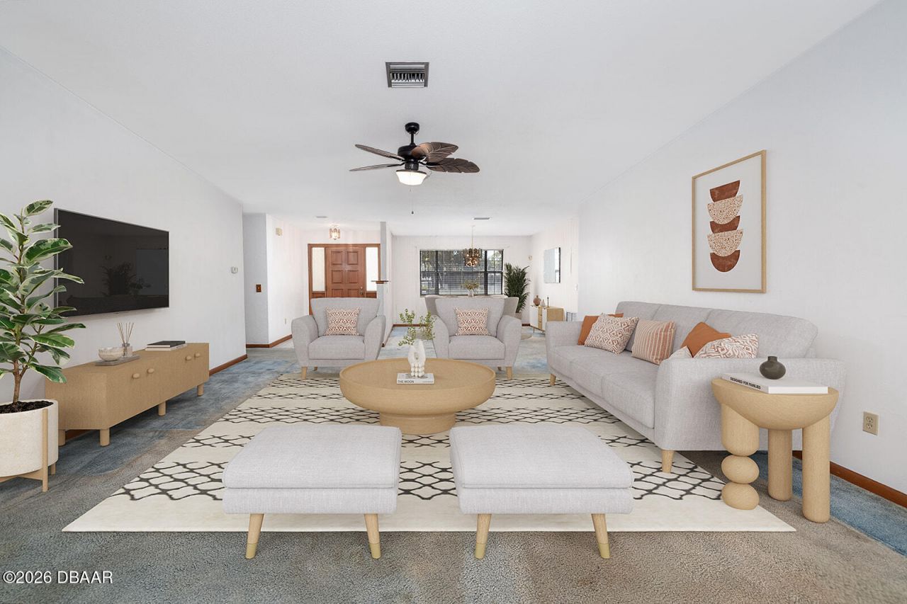 One-owner Port Orange home with great space, strong potential, and a peaceful pond setting. Freshly painted interior features 3 bedrooms, 2 baths, formal living and dining rooms, an eat-in kitchen, fireplace in the living room, large indoor laundry room, and generous closets and storage throughout. The 322 sq. ft. window-enclosed porch overlooks a pretty pond with fish. There's also a framed 500 sq. ft. bonus room under roof with electric, ideal for future flex space, hobbies, guests, workspace, or possible in-law setup, plus a 122 sq. ft. attached shed. Some fenced yard, lots of parking, deep-water well for irrigation, city utilities, and a 2-car garage. Convenient Port Orange location near schools, shopping, dining, and more. Some pictures virtually staged.