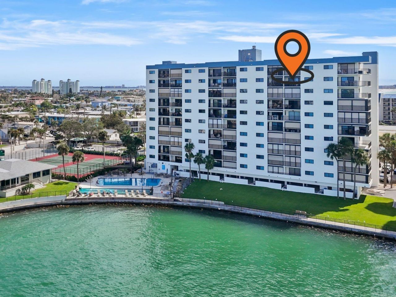 Experience coastal living at its best in this beautifully updated 9th-floor condo at Envoy Point East on St. Pete Beach. Unit 903E is a fully furnished 2-bedroom, 2-bath residence offering sweeping views of the Gulf of Mexico, Blind Pass, and unforgettable sunsets from the private balcony. The remodeled kitchen is open and functional, featuring a center island with bar seating, abundant counter space, pull-out cabinet storage, and a dedicated coffee bar with water views. The spacious primary suite offers balcony access, a walk-in closet, and an updated en-suite bath with a step-in shower. The guest bedroom enjoys private access to the second full bath, creating a desirable second en-suite layout, with a stackable washer and dryer conveniently located in the guest bath. Consistent flooring throughout and warm, neutral finishes create a comfortable and inviting atmosphere. The unit includes a deeded storage closet for added convenience. Envoy Point is a gated, beachfront community with 24-hour security and resort-style amenities including two pools, two clubhouses, tennis and pickleball courts, a fitness center, shuffleboard, and private beach access to Upham Beach and the community's Secret Garden. Located near Corey Avenue's shops, dining, and Sunday Market, with easy access to the SunRunner and downtown St. Petersburg. Lease terms are flexible with a three-month minimum. Envoy Point is a smoke-free, pet-free community (service animals permitted). This is an exceptional opportunity to enjoy turnkey beach living in one of St. Pete Beach's most desirable communities.