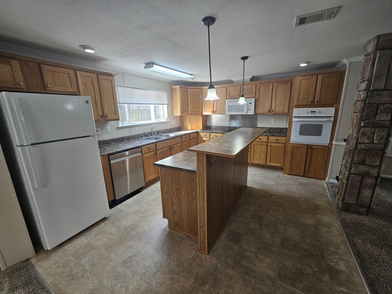 This well-maintained home in features an open floor plan perfect for modern living & entertaining. The spacious family room flows seamlessly into the kitchen, creating an ideal space for gatherings. Stone columns provide subtle definition between areas while maintaining the open feel. The kitchen boasts a large island w/ ample counter space & seating, making it the natural hub of the home. A stone fireplace anchors the living area, complemented by a large built-in entertainment center & don't miss the built in desk/workstatiion. The master suite includes a private bathroom w/ a jetted tub & separate shower. The large walk-in closet features built-in shelves for organized storage. A spacious indoor laundry room provides convenient access to the backyard, adding to the home's practical layout. Also has plantation shutters. Step outside to your private backyard, fully enclosed w/ an 8-ft privacy fence?perfect for relaxing, entertaining, or letting kids & pets play safely.